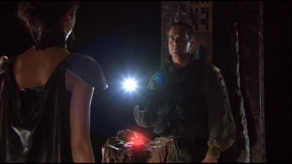 Adria steht mit Daniel vor dem Heiligen Gral (SG1 10x10 Die Suche, Teil 1).