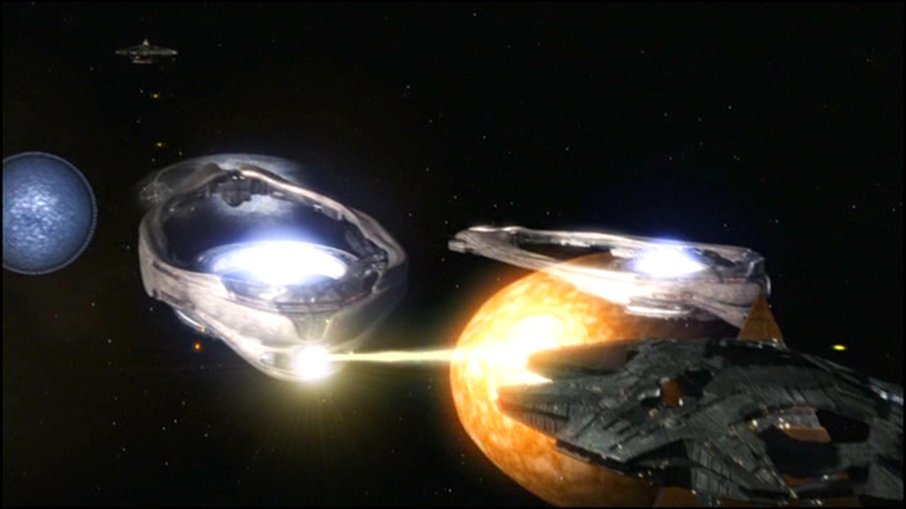|Beschreibung = Ein [[Ha'tak]] wird von einem Ori- | |Beschreibung = Ein [[Ha'tak]] wird von einem [[Ori-Mutterschiff]] zerstört. | ||