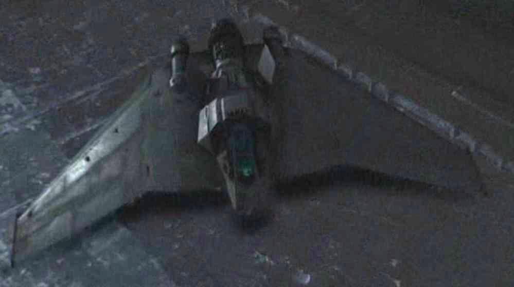 Sheppards F-302 ist am Rumpf des Wraith-Basisschiffes „gelandet“. |