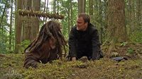 Nachdem sie das Dorf evakuiert haben, gehen Ronon und Rodney in den Wald, um Keller zu suchen, welche gerade wieder erwacht und ihren Entführer weiter mit Fragen löchert. Dieser sagt nun immerhin, dass er ein Läufer ist. Während Ronon weiter Spuren liest, erklärt Rodney ihm, dass er sich vor jeder Mission die Planetendaten auf seinen Computer lädt, den er immer dabei hat. Da Ronon ihm vorwirft, ohne die technischen Sachen nicht auszukommen, erzählt Rodney von seiner Zeit als Pfadfinder: Er wurde aus der Gruppe verwiesen, aber das Handbuch des Pfadfindervereins besitzt er noch. Ronon sieht inzwischen Wraithblut auf dem Weg und Spuren. Er folgt ihnen, mit einem Stock den Weg abtastend, und sticht an einer Stelle bei den Spuren mit den Zweig auf den Boden: Eine Falltür öffnet sich, darunter befindet sich eine tödliche Falle.