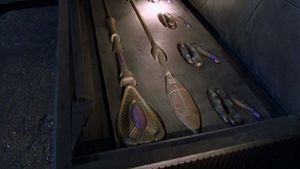 - Stabwaffen werden bereits von Ras Wächtern im Film benutzt. Da Teal'c fast immer eine Stabwaffe benutzt, gibt es kaum eine Folge ohne Stabwaffe.