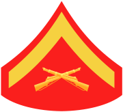 | 18:18, 8. Sep. 2010 | USMC CPL.svg (Datei) | 17 KB | {{Information |Beschreibung = Rangabzeichen Corporal |Quelle = {{wp|File:USMC-E4.svg}} |Urheber = {{wp|en|User:Ipankonin}} |Datum = 2. Januar 2008 |Genehmigung = |Andere Versionen = |Anmerkungen = }} | 1 | |