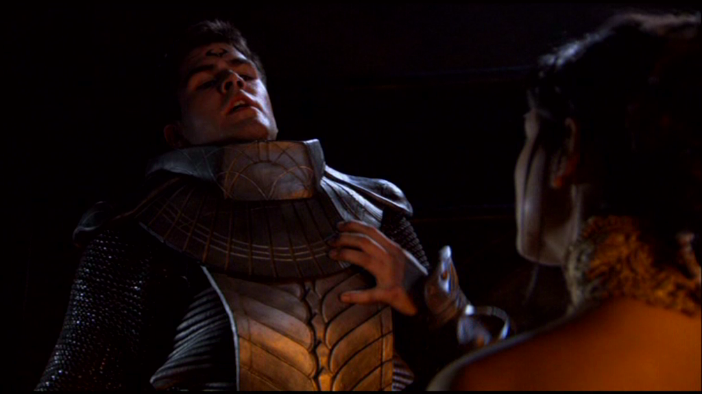 Adria verhört einen Jaffa, über die Dakara-Waffe (SG1 10x07 Adrias Macht).