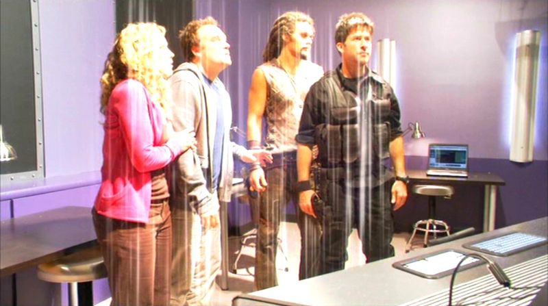 Nachdem Sheppard und Ronon die beiden befreit haben, werden alle auf die Daedalus gebeamt.