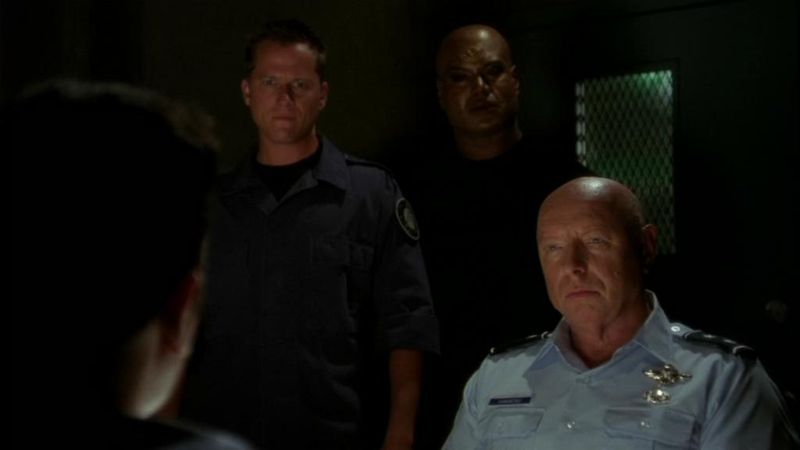 SG1_06x14SG1 6x14 Das Machtkartell Brent Langham erzählt Jonas Quinn, Teal'c und General Hammond über das Komitee.