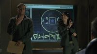 Während Carter es schafft, das Kühlmittel aus Daniels Korridor zu leiten, ist der bereits an der Wand zusammengesackt und Adria lässt Vala auf den Boden fallen. Dann hebt sie auch die Türensperre auf und steigt auf.