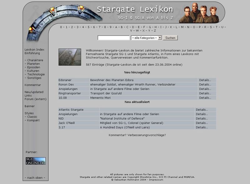 Classic Design von Stargate-Lexikon.de, Screenshot in Firefox