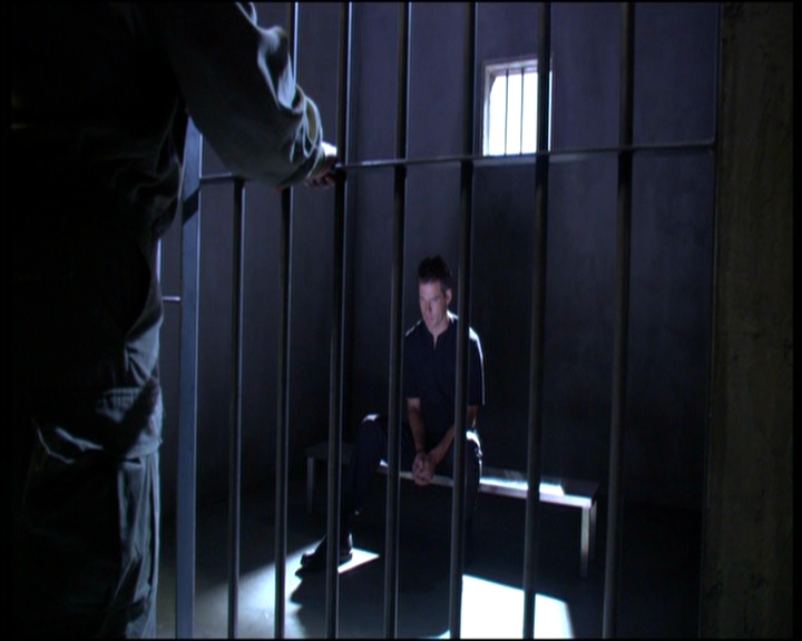 Dieses Bild ist ein Snapshot der Episode SG1 9x12 Kollateralschaden und zeigt Mitchell im Gefängnis.
