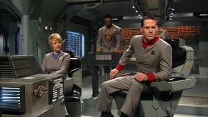 Mitchell (Kirk) erscheint auf der Brücke einer Daedalus-Klasse, Sam (Uhura) erklärt, sie empfange Energieanomalien; die Singularität werde explodieren. Teal'c (Worf) meldet die Waffen auf maximale Leistung. Daniel (Spock) wendet seinen Blick von seinem Anzeigeinstrument (das stark dem Instrument auf der originalen USS Enterprise ähnelt) Eruptionen in der Sonne. Schockwellen halten direkt auf das Schiff zu. Mitchell ruft den Maschinenraum und fordert Warp-Geschwindigkeit.