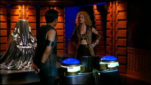 Sam hat sich nach der Evakuierung des Materials wieder in das Labor begeben, von wo sie per Hologramm Teal'c und Jack zu einer Steuerkonsole der Schutzschilde leitet, die gesenkt werden müssen, damit sie und Thor aus dem Mutterschiff auf den Frachter transportiert werden können. Während sie noch nach der Konsole suchen, wird Sam von von Osiris und einigen Jaffa im Labor überrascht und mit einer Zat ohnmächtig geschossen.