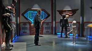 Auf Bitte der Asgard reiste SG-1 zum von Replikatoren überrannten Heimatplanet Hala, wo es dem Team gelang, das Zeiterweiterungsfeld wieder wie geplant in eine Falle für die Replikatoren zu verwandeln.[4] Die Falle war durch die Androidin Reese möglich gemacht worden,[4] die SG-1 etwa ein Jahr zuvor gefunden und den Asgard überlassen hatte.[26] Thor verhinderte kurz darauf mit seiner Anwesenheit und der ausgesprochenen Bevorzugung von General Hammond und dessen Team die von Kinsey geplante Übernahme des Stargates durch den NID.[27]