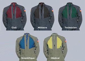 Die Mitglieder des Expeditionsteams sind entsprechend ihrer Funktion mit farblich unterschiedlichen Uniformjacken ausgestattet.