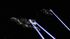 Die Daedalus feuert mit Railguns, der Schild ist aktiv.