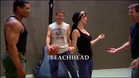 (Teal'c und Vala spielen gegen Mitchell und Daniel Basketball)