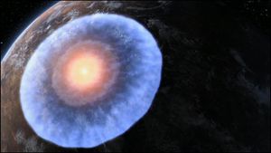Der Schutzschild (blau), die Explosionswelle (rot) der Mark IX.