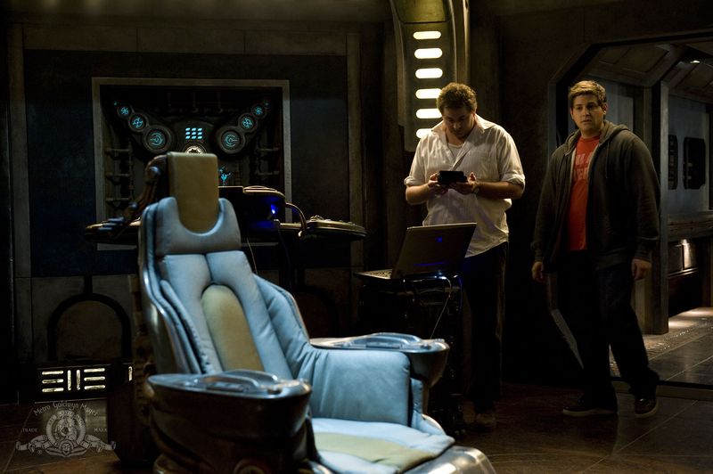 Eli Wallace und Jeremy Franklin untersuchen das Repositorium der Destiny. |