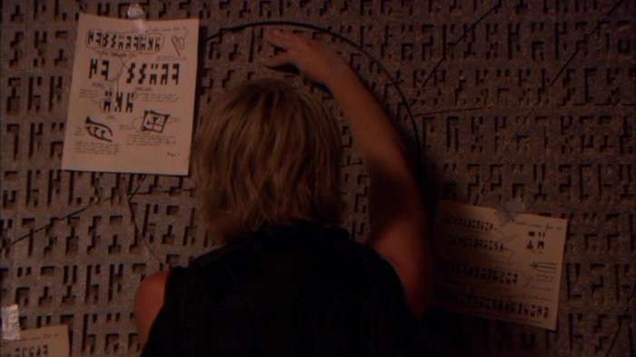 Datei:8x17 Sam untersucht ein Antikerschrift-Wand.jpg