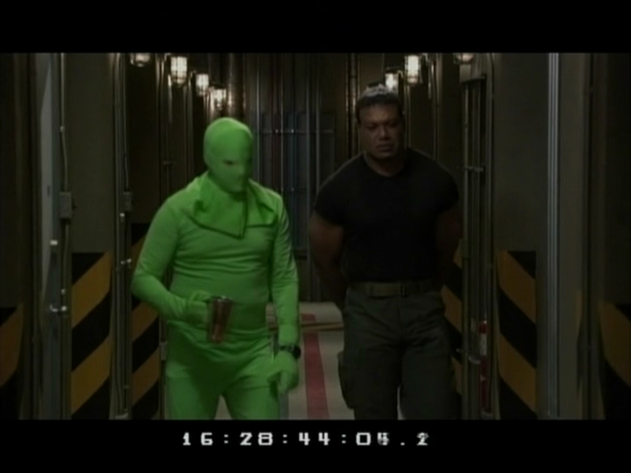 Richard Dean Anderson im Greensuit neben Christopher Judge (BTS-Bild) |