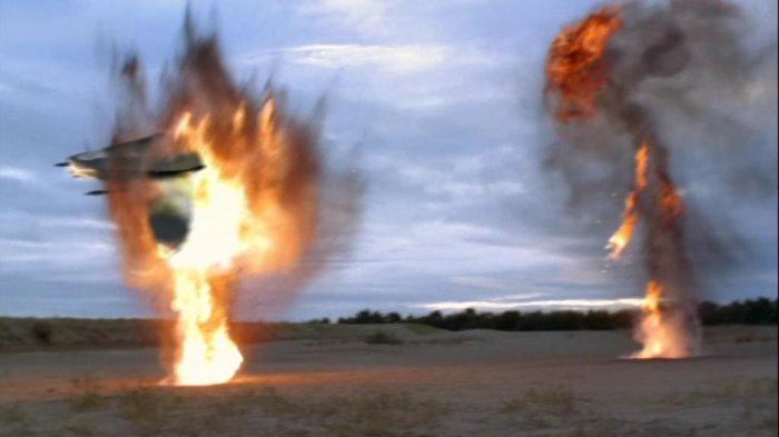 Der Todesgleiter, mit dem Apophis auf der Flucht vor Sokar ist, stürzt ab. |