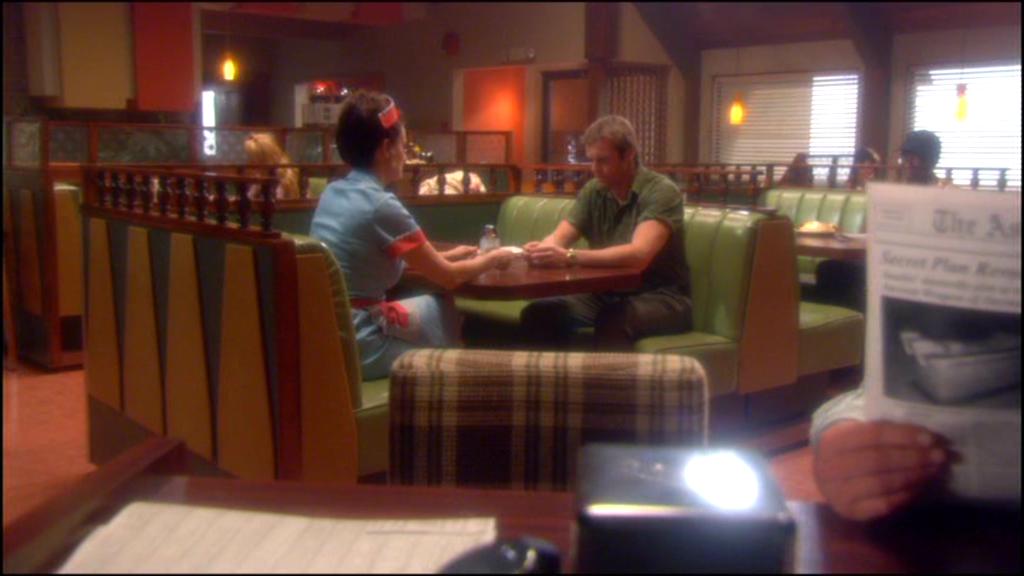Daniel Jackson und Oma Desala unterhalten sich im Aufstiegscafé. |