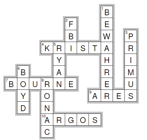 Die Lösung zu einer Art von Kreuzworträtsel, von Benutzer:Col. o'neill erstellt. Eigentliches Rätsel: hier |
