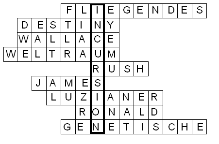Die Lösung zu einer Art von Kreuzworträtsel, von Benutzer:Col. o'neill erstellt. Eigentliches Rätsel: hier |