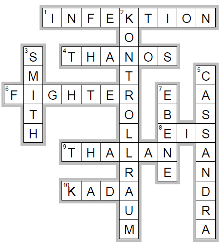 Die Lösung zu einer Art von Kreuzworträtsel, von Benutzer:Col. o'neill erstellt. Eigentliches Rätsel: hier |