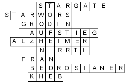 Die Lösung zu einer Art von Kreuzworträtsel, von Benutzer:Col. o'neill erstellt. Eigentliches Rätsel: hier |