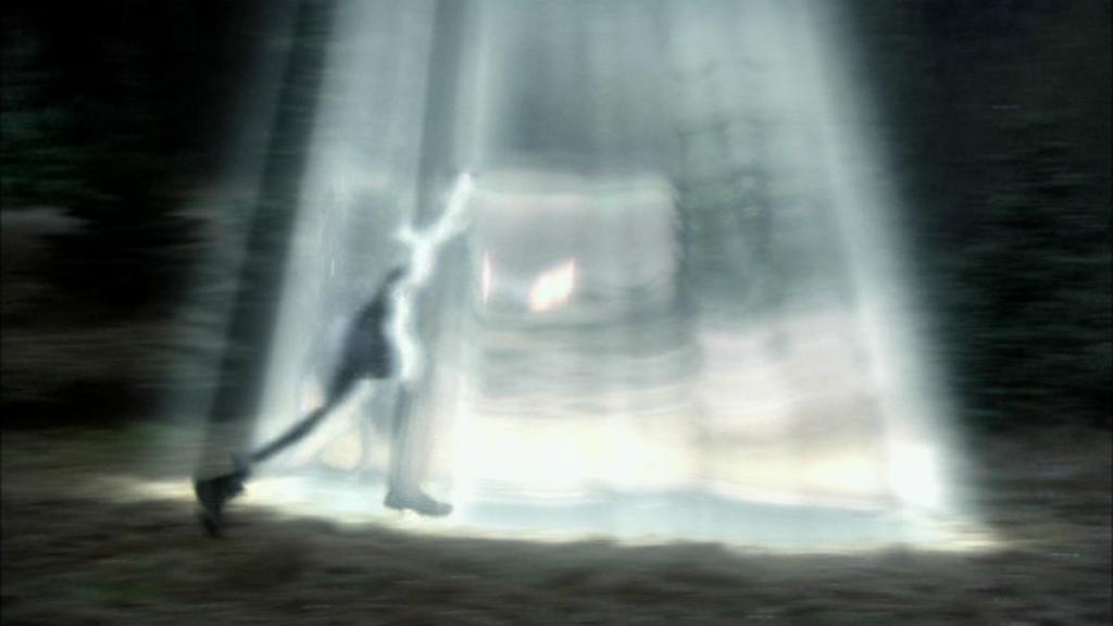 Ford stürzt sich in den Transporterstrahl des Jägers. |