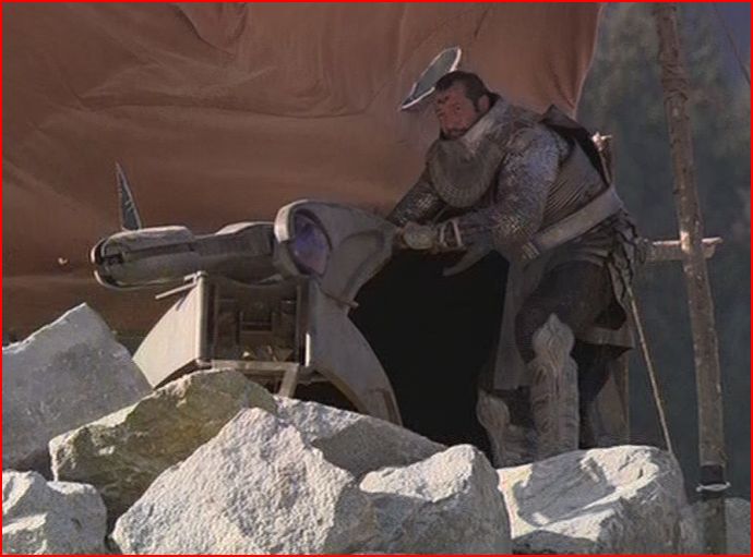 Ein Jaffa feuert mit einem Goa'uld-Geschütz auf die SG-Teams. |