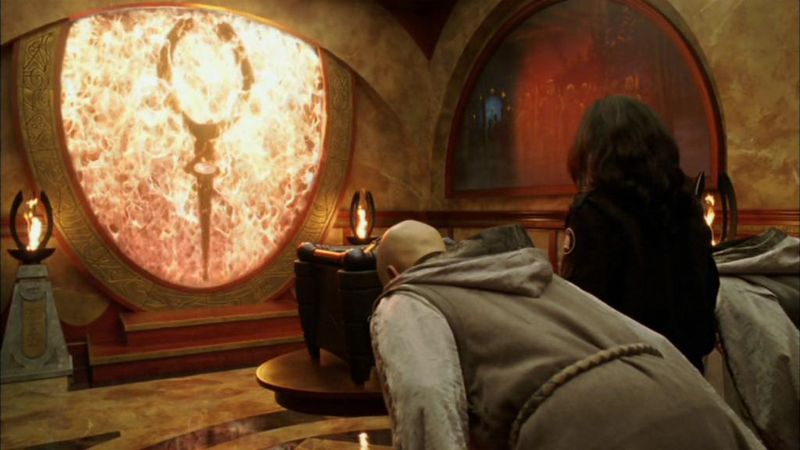 Vala Mal Doran wird in Adrias Raum der Flamme der Erleuchtung gebracht, in dem die Lade der Wahrheit steht. |