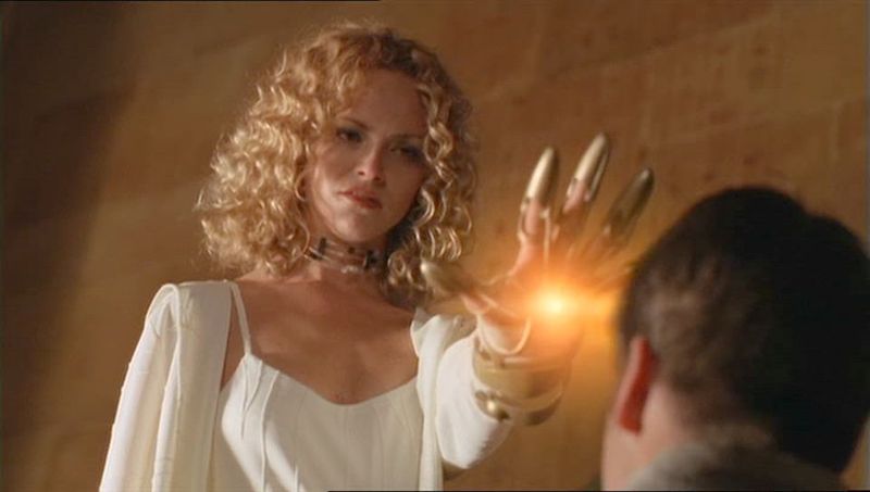 Osiris befragt Daniel Jackson mit dem Goa'uld Handmodul. |