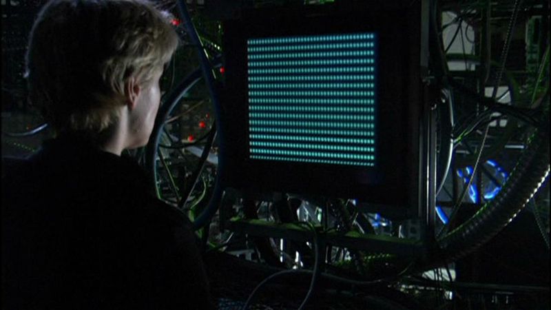 Sam am Interface des Computer-Gebildes: Sie hat ihren Körper nicht mehr unter Kontrolle. |