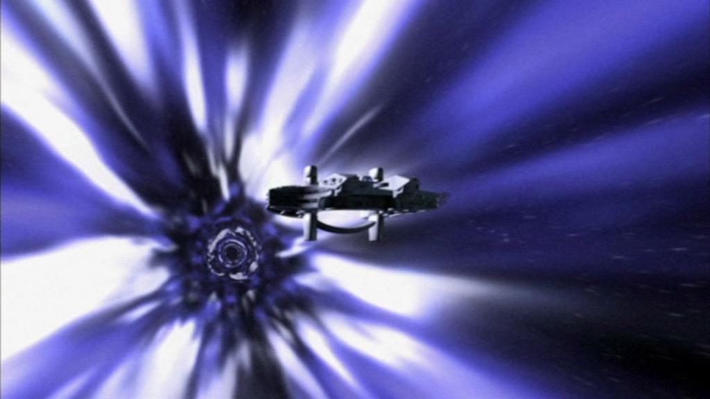 Die Daniel Jackson, das nach Doktor Daniel Jackson benannte Raumschiff, fliegt im Hyperraum. |