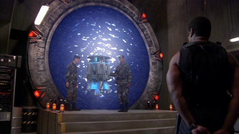 Der Asgard-Satellit kommt durchs Stargate an. |