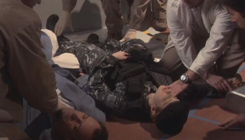 Nach dem Rematerialisierungsprozess liegt Cadman bewusstlos am Boden. |