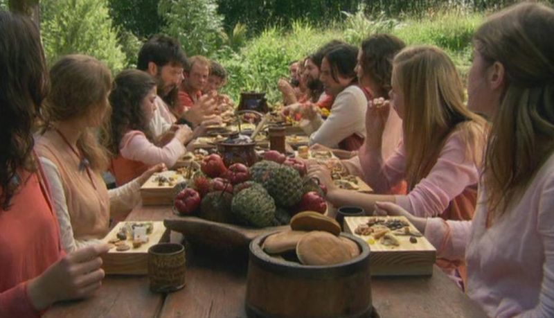 Sheppard isst gemeinsam mit den Dorfbewohnern. |