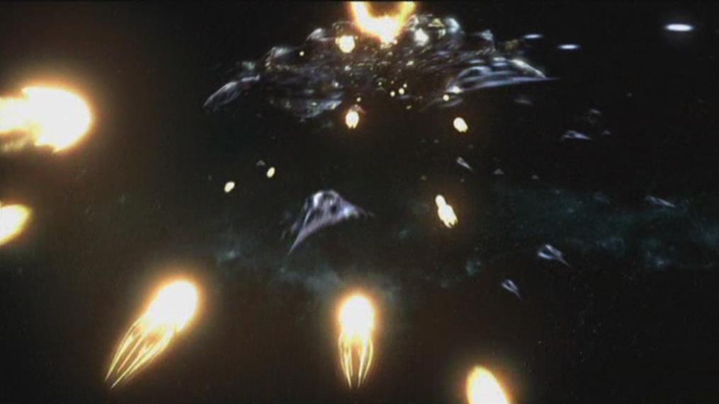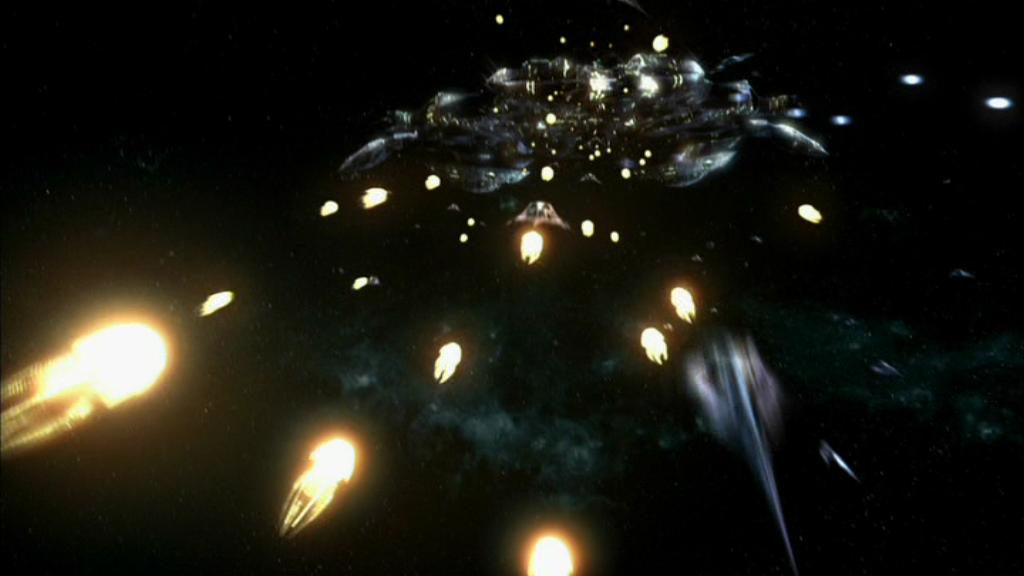 Die Drohnengeschosse der Orion steuern eines der beiden Wraith-Basisschiffe an.