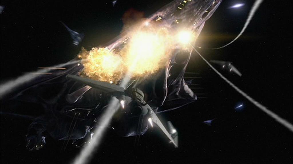 Die F-302er der Daedalus greifen Michaels Wraith-Kreuzer an, um seine Waffensysteme lahmzulegen. |