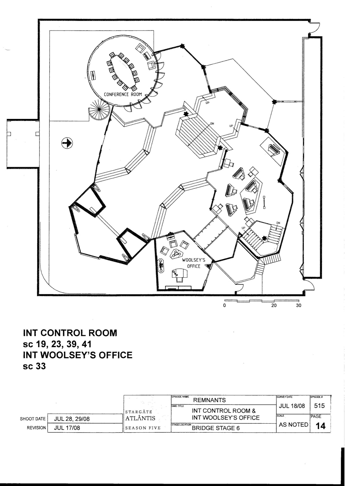 Planskizze der Kontrollebene von Atlantis: Der Gateraum, der Konferenzraum, der Kontrollraum und das Büro des Atlantis-Kommandanten |