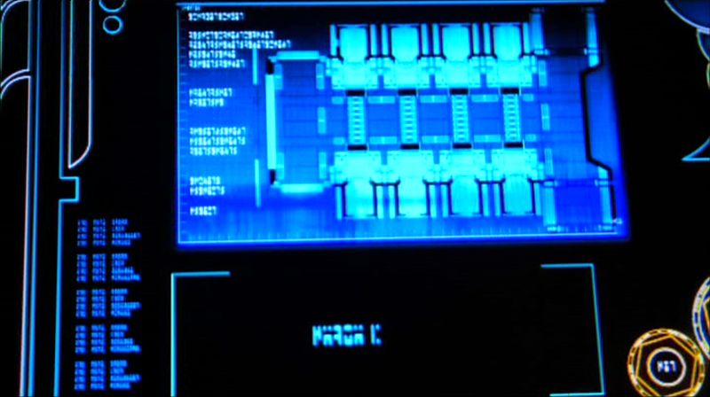 Eine vereinfachte Skizze des Stasisraums mit den acht Kapseln in einer Meldung des Interfaces auf der Brücke