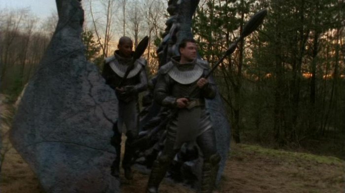Die Jaffa passieren die den Schild der Stargate-Waffe an der einzig möglichen Stelle. |