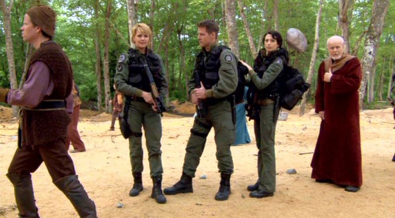 Mit Hilfe von Steinwürfen findet SG-1 den Echtzeitpfad. |
