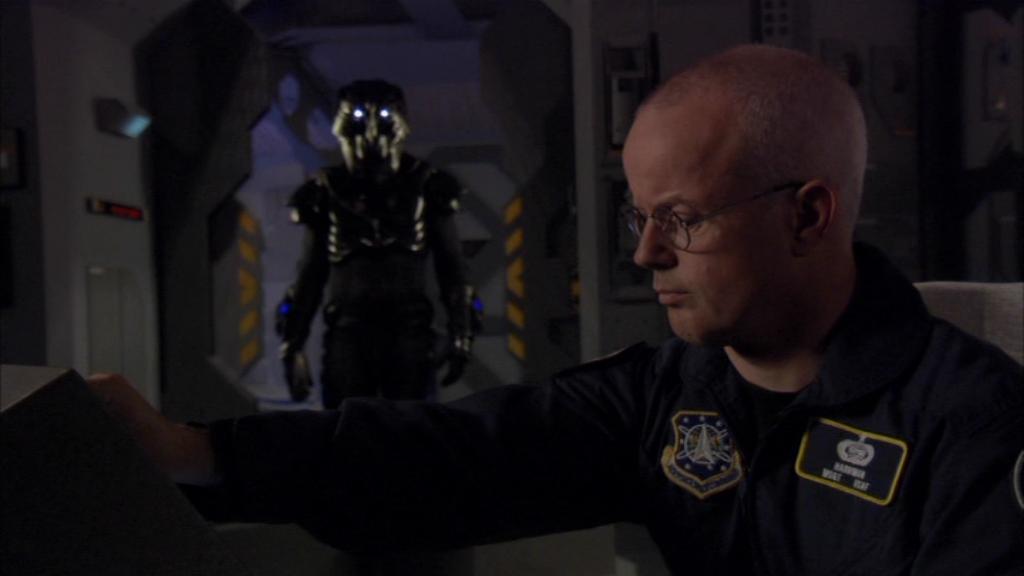 Der vermeintliche Supersoldat betritt die Brücke der Prometheus. |