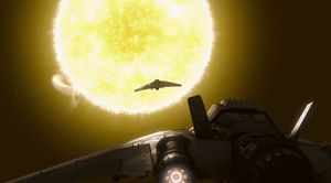 - Als die Daedalus den Hyperraum verlässt, sieht es wie ein Milchstraßen-Hyperraumfenster aus. McKay sagt aber, dass sie schon am Rande der Pegasus-Galaxie seien.