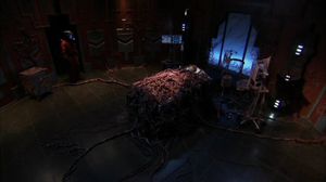 Carson findet heraus, dass sie es hier mit einem Material zu tun haben, das sehr ähnlich ist wie die Chitin-Panzer von Käfern. Es kann extrem hart und widerstandsfähig werden, so sehr, dass es extreme Hitze, Druck und sogar Radioaktivität abhält, oder, wie es Zelenka sagt, wie die Hülle eines Raumschiffes. Woolsey, der allmählich beginnt zu begreifen, was die beiden ihm sagen wollen, hört schockiert zu, wie Zelenka ihm erzählt, dass sie schon immer vermutet haben, dass Wraith-Basisschiffe nicht gebaut werden, sondern wachsen, und fragt dann nach, wie groß es schon sei. Zelenka zeigt ihm die Sensorbilder, die zeigen, dass es sich bereits drei Stockwerke tief durch die Wände gearbeitet hat und praktisch den ganzen Fußboden einnimmt.
