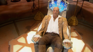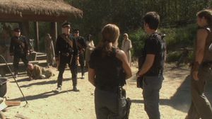Als der Lord Protector auftaucht, stellt sich Sheppard vor, doch der Mann meint, dass er alles weiß, was in seinem Gebiet passiert und verleiht dem Ausdruck, indem er sich in seinem Stuhl zurück lehnt und eine Live-Übertragung von dem Dorf aufruft, in dem Sheppard vor kurzem noch war.