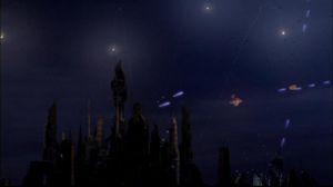- Im Entstehungsprozess der Episode zog man für einige Zeit in Erwägung, die Railguns nicht zu nutzen, weil sie mangels Zusatzbewegung wie einem Rückstoß oder dem Auswerfen einer Patronenhülle nicht allzu dramatisch sind. Letztlich entschied man aber doch, sie zu benutzen, und integrierte dafür Zusatzdynamik wie die bläulichen Schüsse und die Bewegung der ganzen Waffe während dem Schießen.[1]