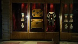 - In der Vitrine steht links neben der Naquadahbombe ein Nachbau der Büste der Nofretete.