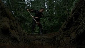 Sheppard schaufelt Ronons Grab mit Erde voll.